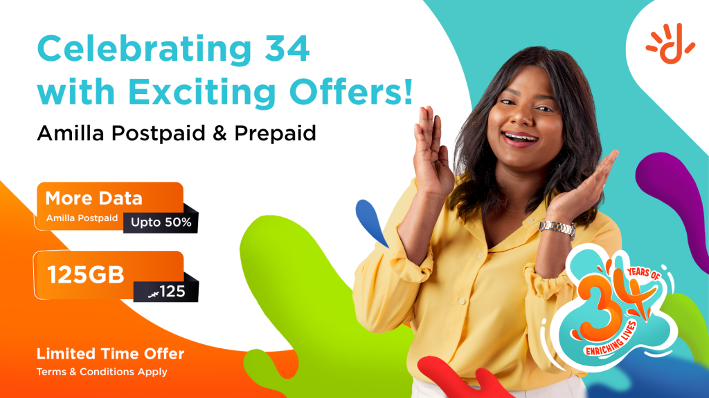 ދިރާގުގެ 34 ވަނަ އަހަރީ ދުވަސް ފާހަގަކުރުމުގެ ގޮތުން ޕްރީޕެއިޑް އަދި ޕޯސްޓްޕެއިޑް ކަސްޓަމަރުންނަށް ތަފާތު ޚާއްސަ އޮފަރތަކެއް ނެރެފި އެވެ.